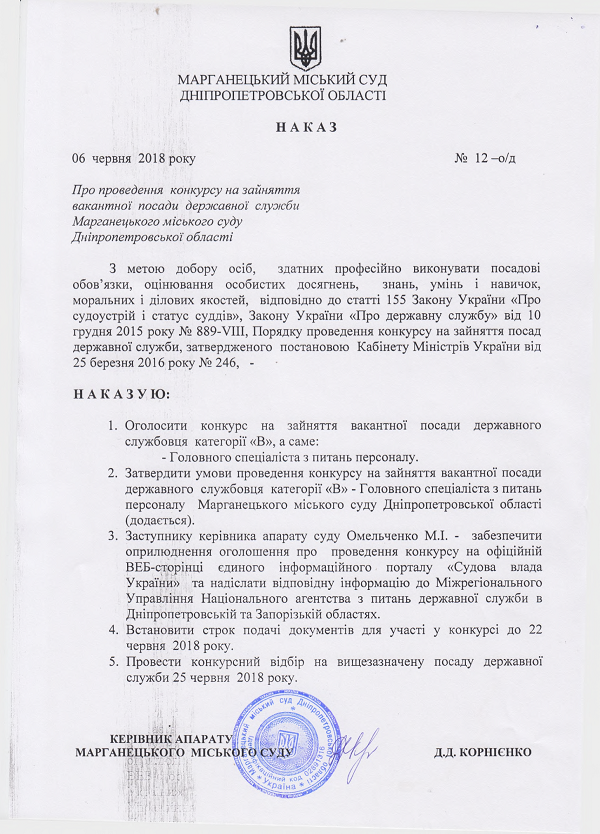Наказ про оголошення конкурсу від 06.06.2018р.
